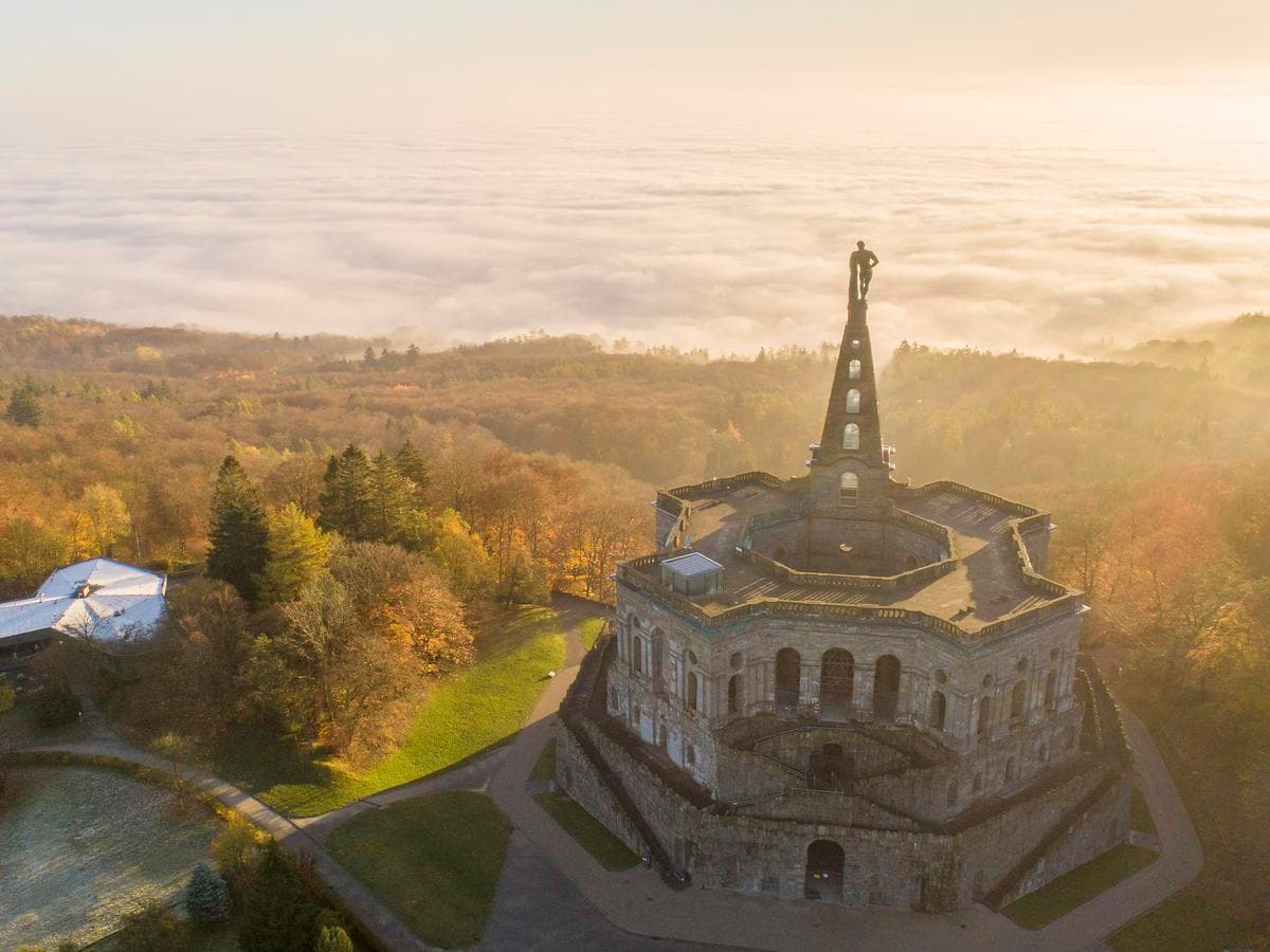It looks like a medieval ruin, but it is not: The Löwenburg Castle was commissioned by Landgrave William IX. built between 1793 and 1801 in the Bergpark Wilhelmshöhe modeled on a ruined knight's castle. It was intended to portray the historical significance of the House of Hesse, which has ruled since the Middle Ages. Thus the complex is equipped with everything a medieval castle needs – from the mighty castle tower, through the tournament ground, to the armory.